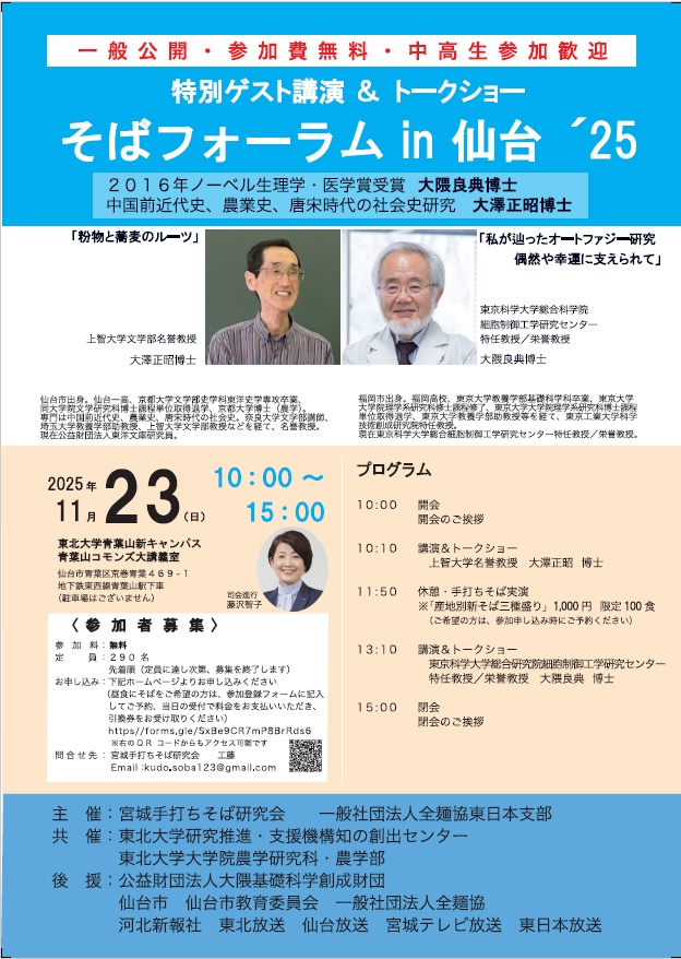 11/23(日)開催予定の「そばフォーラム in 仙台 2025」のポスターが完成しました。皆様のご来場、ご参加をお待ちしております。
